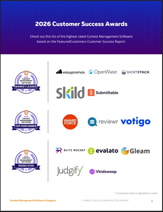 COOPER CITY, FL, UNITED STATES, April 21, 2026 /EINPresswire.com/ — Today FeaturedCustomers published the Winter 2026 Contest Management Software Customer Success Report to give prospects better insight on which Contest Management Software would work best for their business according to real customer references.